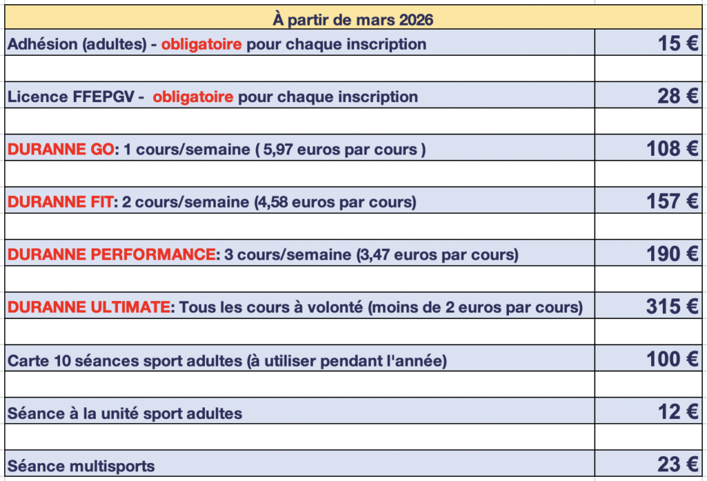 Après l’inscription en ligne, veuillez de télécharger la fiche d’inscription (adultes ou enfants) et questionnaire de santé (télécharger ici), les remplir en numérique et retourner par e-mail: contact@duranne-sports.com , ou imprimer en papier et de l’apporter au cours.