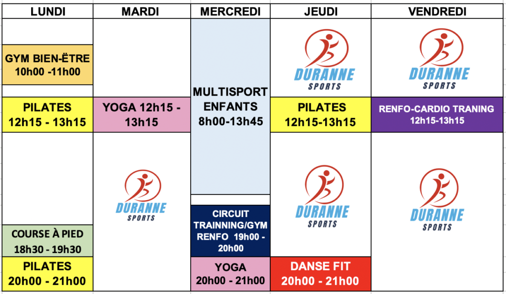Tous nos cours se passent au NOUVEAU COMPLEX SPORTIF DE LA DURANNE « HENRI MICHEL.