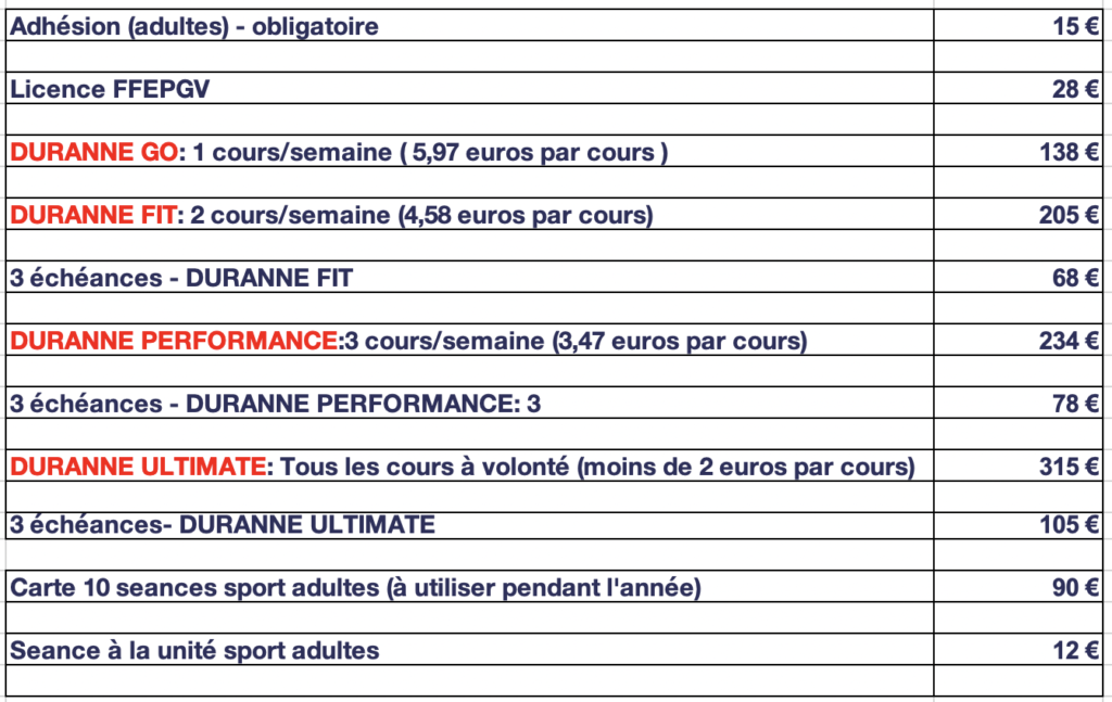 Après l’inscription en ligne, veuillez de télécharger la fiche d’inscription (adultes ou enfants) et questionnaire de santé (télécharger ici), les remplir en numérique et retourner par e-mail: contact@duranne-sports.com , ou imprimer en papier et de l’apporter au cours.